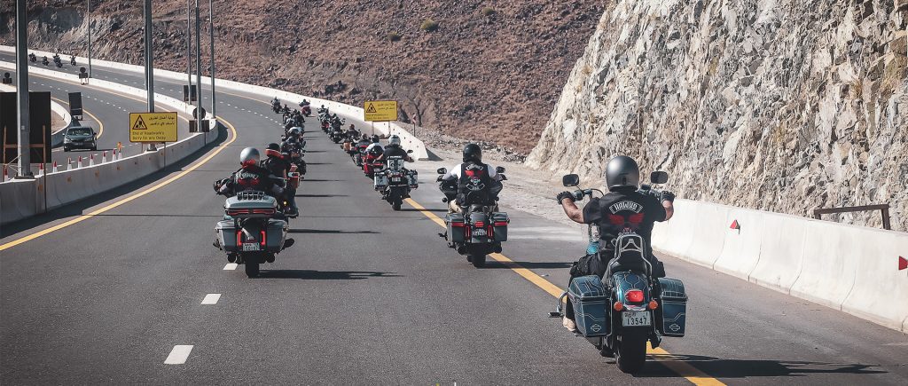 An early departure from Dubai as we ride east toward the dramatic Hajar Mountains. The city fades behind us, replaced by raw rock faces and open horizons.